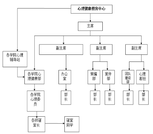 每学年期未,表现出色的心理执委、心理干事授予心理委员会的“优秀心理干部”和“优秀心理干事”称号,并颁发荣誉证书,评优比率为10%;对干事的考核结果将作为培养心理委员会后备干部的重要依据之一,对于考核不合格的干事,由所在部门视情况予以辞退。 附:校大学生心理委员会学生组织机构图