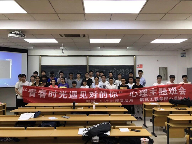 为了有针对性地科普心理健康知识,帮助大学生树立心理健康意识,进一步优化同学们的心理素质以及增强心理调适能力,更好地增强班级凝聚力,信息工程学院于2019年5月4日至2019年5月17日陆续开展了以“青春时光,遇见对的你”为主题的2018级学生心理班会活动。