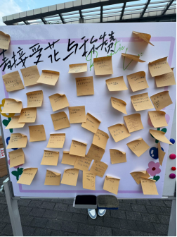 “花与称赞”活动通过结合自然之美和正面语言的力量,不仅增添了校园的色彩,还培养了同学们的表达能力和同理心,让每个人都能在分享和倾听中找到归属感。花朵不仅以其色彩和香气为人们带来愉悦感,还能作为一种强有力的社交工具。通过赠送和欣赏花朵,人们可以更轻松地表达赞美与感激,这种赞美本身就是一种重要的社交货币,有助于促进人际联系和团队合作。虽然这次的活动持续时间不长,但提升了同学们的心理上的情绪状态,让同学们在大学生活中感受更多生活中的点滴快乐。