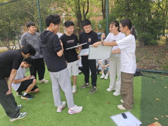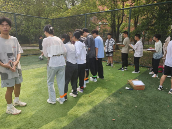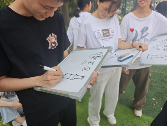 活动以“团结协作 挑战自我”为主线,采取寝室联合组队参赛模式,要求各班级至少选派1个男生寝室和1个女生寝室组成参赛单元。活动设置“两人三足”“你画我猜”“逃脱困境”“珠行万里”四大闯关项目,从肢体协调、思维创新、危机应对等多维度锤炼团队协作能力。“两人三足”中,队员们喊着口号协调步伐,一起向着共同的目标迈进;“你画我猜”里,画画者通过生动比划传递信息,猜题者全神贯注破解谜题,各种有趣的细节层出不穷;“逃脱困境”时,团队成员小心翼翼规划逃生路径,同学们彼此间紧密配合,完成了挑战;“珠行万里”环节,大家默契配合让球顺利抵达终点。各班级队伍在主持人与裁判引导下完成所有游戏,现场加油声此起彼伏。