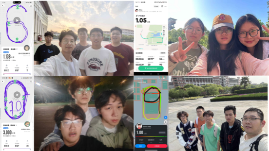 在 “寝室 10 天运动打卡 —— 寻找校园里的数字” 的运动挑战中,同学们携手室友开启创意运动之旅。校园的操场、林荫小道留下奔跑身影,他们用脚步在地图上绘制连续数字轨迹。无论是清晨操场、傍晚林荫道,还是周末校园环线,汗水勾勒的数字印记让 “运动解压” 成为寝室生活新时尚。活动共计收到 388 份运动打卡记录,其中 33 个寝室完成 10 天打卡任务,他们用坚持解锁运动仪式感,将每一个数字都变成青春的注脚。完成活动的同学表示:“手机里连贯的数字轨迹,就像共同编织的青春印记,跑步时的相互鼓励让压力烟消云散。”
