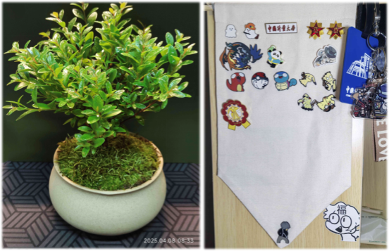 “寝室自用好物大揭秘” 活动以 “提升寝室幸福感” 为切入点,鼓励学生从生活细节中发掘治愈能量,活动累计收到 15 份分享。徽章展示布让荣誉与爱好有了专属陈列空间,护眼台灯为挑灯夜读提供舒适光线,阳台伸缩晾衣架解决大件衣物晾晒难题…… 每件 “宝藏好物” 都承载着优化生活场景的巧思。9 北 413 寝室分享的小叶赤楠盆景获赞无数:“翠绿叶片带来自然生机,学习疲惫时抬头望见一抹绿意,内心的焦虑也随之缓解。” 这些 “小改造” 如同 “幸福催化剂”,让寝室从单纯的居住空间升华为承载归属感的 “心灵小窝”。活动以具象实践告诉学生:幸福感源于对日常的用心经营,兼具实用性与情感价值的物件,正是构筑温馨寝室的 “心” 元素。