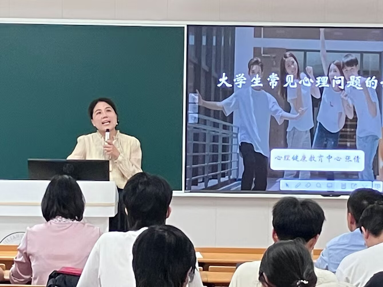 聚焦专业赋能,夯实实战技能。田达志和张倩为本科生、研究生各班级心理气象员逐一颁发聘书,明确其工作职责。张倩老师立足心理育人"四维赋能"体系,从个体自主调适、朋辈互助支持、专业系统干预、社会资源联动等维度,系统阐释大学生心理健康问题的识别与处置路径。通过剖析常见心理障碍的临床表征,结合"语言线索捕捉""行为异常观察""社会功能评估"三步筛查法,演示如何建立"情感联结-风险评估-分级干预"的动态管理闭环。