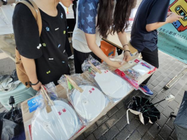 执笔落彩现万象,调朱弄粉悟心弦。素白团扇、矿物颜料与松节油等工具整齐陈列,活动负责人详细讲解漆扇制作技法,学生们纷纷执起画笔,参与者将空白漆扇浸入彩漆,通过旋转角度与浸染时间的把控,创作出独一无二的纹路。漆料在扇面上晕染成诗,有人凝神屏息雕琢细节,有人与同伴分享技法灵感,传统非遗工艺在年轻学子的指尖焕发新生。有的将青绿与靛蓝交融成水墨山水,有的用朱砂点缀出蝶舞花丛。活动特别设置“解忧留言墙”,参与者可将创作感悟书写于墙面的扇形卡纸上。