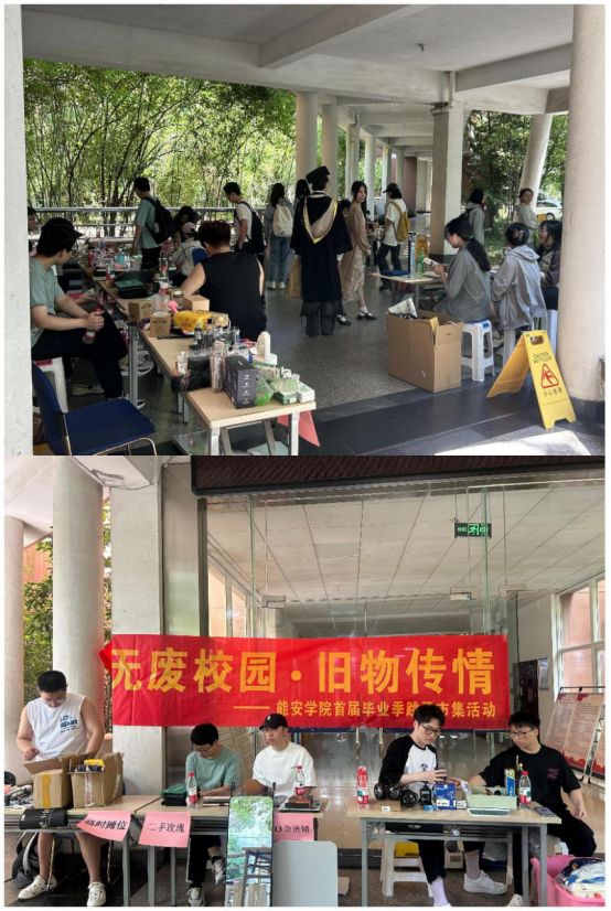 6月正值第54个“世界环境日”,学院在仰仪中楼举办了一场别具意义的“无废校园·旧物传情”毕业季跳蚤市集活动。活动旨在响应环保号召,践行绿色低碳理念,动员青年大学生关心支持环保事业,同时引导毕业生文明离校。活动现场,毕业生们精心布置自己的摊位,书籍、文具、台灯、收纳盒、运动器材等物品琳琅满目,不少摊位还贴上手绘海报,标注“毕业清仓”、“低价转卖”、“以物易物”等字样,吸引师生驻足,讨价还价声、欢笑声在现场交织,洋溢着浓厚的毕业季氛围。这场跳蚤市集不仅是一场旧物交易的盛会,更是一堂生动的环保实践课,让“绿色低碳”理念在校园里落地生根。